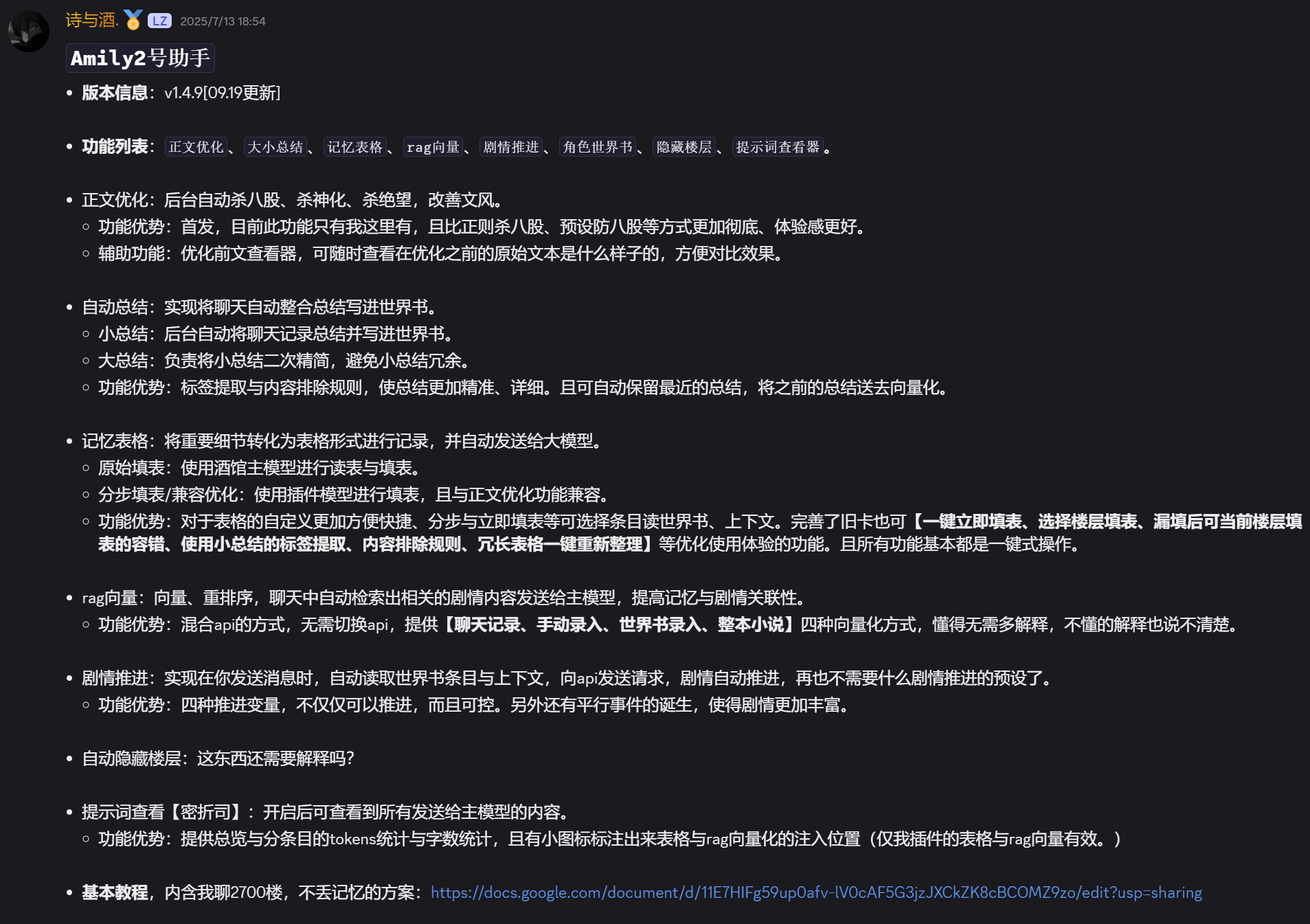 记忆表格项目Github库:https://github.com/muyoou/st-memory-enhancement ←麻烦点个星星支持下
