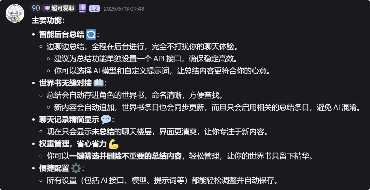 【酒馆助手脚本】全自动总结 作者:90