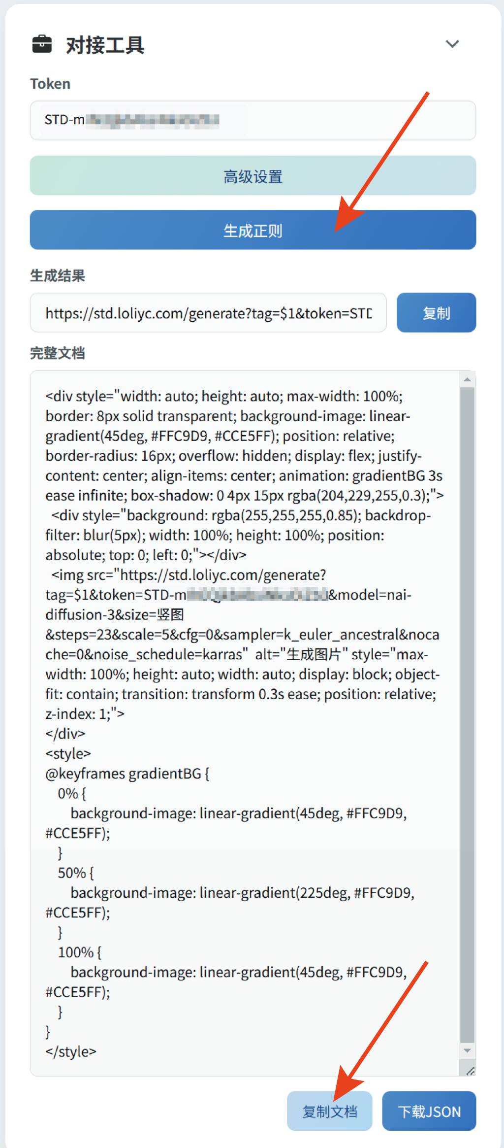 另外有一份正则文件,也请导入到tavo当中,该正则只是一个壳,考虑到有萌新不会写正则,我准备了一个网站可以直接生成一份带画图秘钥的正则内容,生成完毕后直接复制到tavo里的正则文件中。