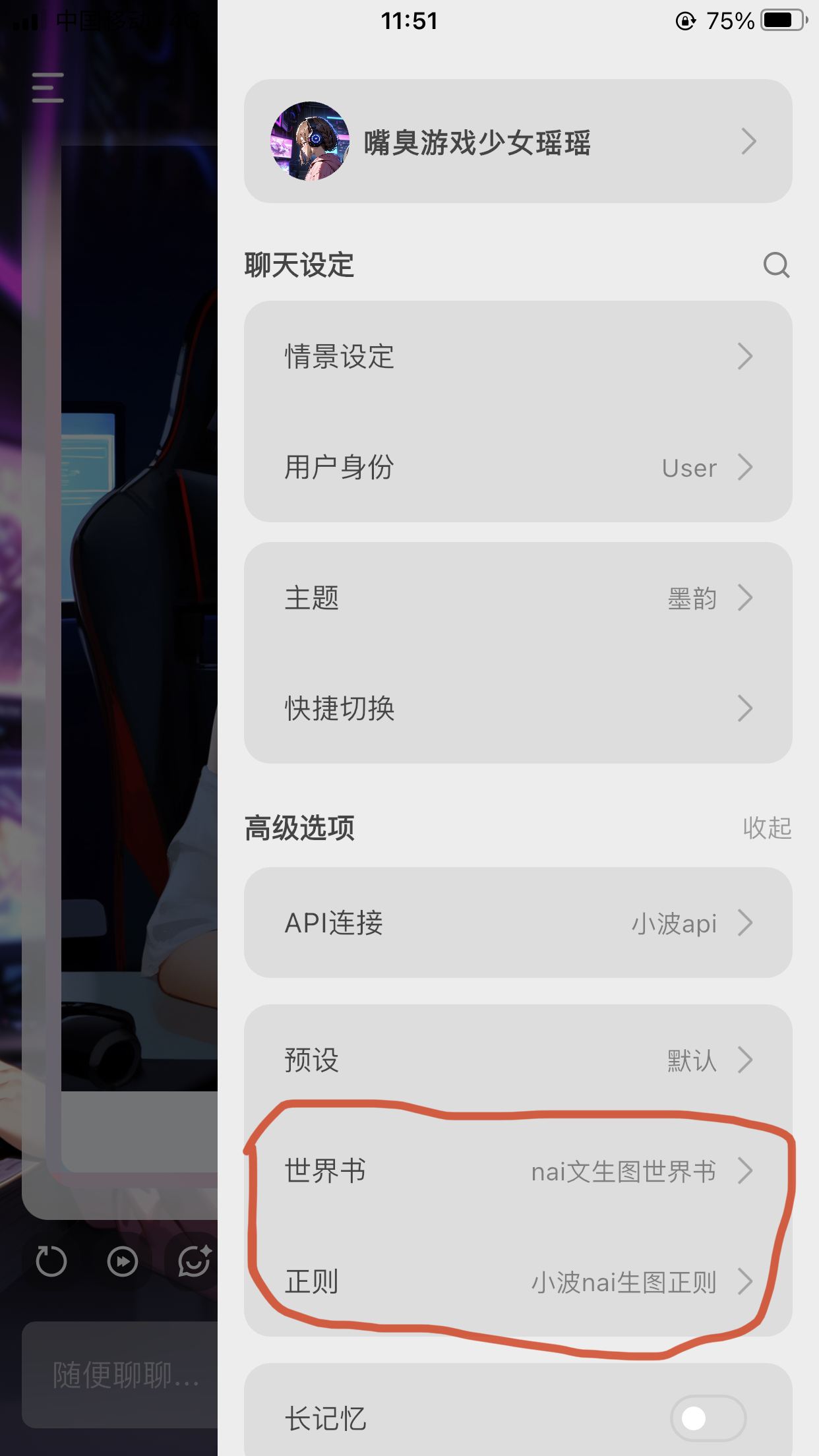 5.绑定世界书和正则